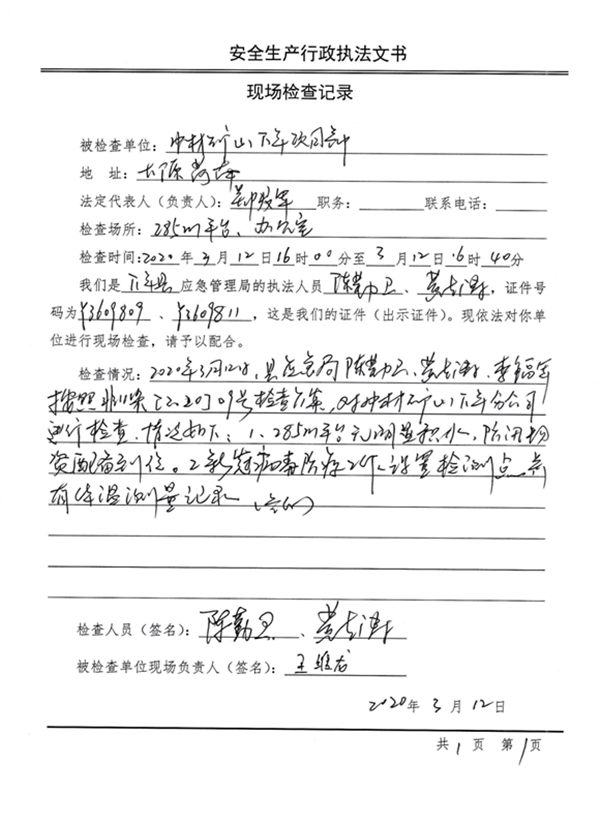 2020312午,根據(jù)萬年縣疫期防控需要,萬年縣應(yīng)急管理局領(lǐng)導(dǎo)中材礦山萬年分公司施工現(xiàn)場(chǎng)及辦公室進(jìn)行檢查主要檢查了分公司疫情防控相關(guān)措施及汛期防護(hù)設(shè)施物資。