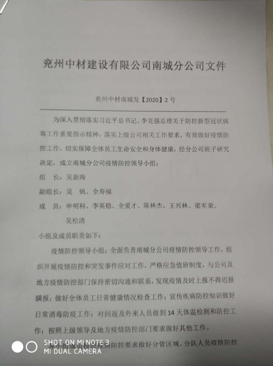 2020年伊始,一場(chǎng)突如其來(lái)的新冠疫情爆發(fā)于武漢,肆虐于全國(guó),不斷攀升的疫情數(shù)據(jù)牽動(dòng)著每個(gè)人的神經(jīng)。集團(tuán)和公司對(duì)此次疫情高度重視,要求各下屬單位全力以赴應(yīng)對(duì)疫情。為此南城分公司積極響應(yīng)號(hào)召,全力開(kāi)展疫情防控工作,堅(jiān)持“疫情就是命令,防控就是責(zé)任”的原則,堅(jiān)決打好疫情防控攻堅(jiān)戰(zhàn)。 一、加強(qiáng)組織領(lǐng)導(dǎo),強(qiáng)化防控意識(shí) 分公司以深入貫徹落實(shí)集團(tuán)公司文件精神為目標(biāo),密切配合當(dāng)?shù)卣ぷ?,成立以吳新海同志為首的疫情防控領(lǐng)導(dǎo)小組,細(xì)化人員責(zé)任,明確組織分工,從思想高度做好打贏防疫攻堅(jiān)戰(zhàn)的準(zhǔn)備。