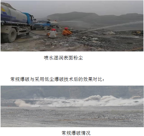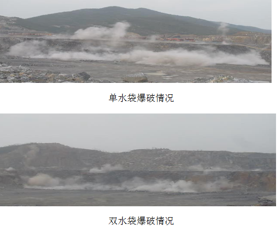 (5)、采用低塵爆破技術(shù)對(duì)于礦山爆破進(jìn)行降塵作業(yè): 爆破粉塵的來源:一是爆破物體表面的粉塵,鉆孔產(chǎn)生的巖粉;二是爆破物體破碎產(chǎn)生的粉塵,爆破物體坍塌產(chǎn)生的粉塵,爆炸沖擊波和爆炸氣體揚(yáng)起的粉塵。 爆破粉塵的危害:一是環(huán)境危害,主要包括大氣污染和生態(tài)系統(tǒng)的破壞,粉塵污染后的空氣通過大氣循環(huán)對(duì)周邊的城市空氣質(zhì)量造成嚴(yán)重影響;二是社會(huì)危害,對(duì)人體健康危害,引起塵肺病等。 目前,關(guān)于爆破降塵有多種不同的工藝,其中利用水袋進(jìn)行低塵爆破技術(shù)的降塵是一種相對(duì)方便 水袋法降塵爆破主要依據(jù)炸藥爆炸使水袋中的水形成水霧霧滴,水霧霧滴都是有一定大小,水霧水滴對(duì)爆破粉塵進(jìn)行捕捉而濕潤(rùn)塵粒,達(dá)到降塵效果。 根據(jù)水霧霧滴與粉塵作用原理,水霧霧滴對(duì)粉塵的作用時(shí)間越長(zhǎng)越好,因此應(yīng)設(shè)定水袋受爆炸沖擊波影響一定的時(shí)間間隔,使水霧霧滴與粉塵具有較長(zhǎng)的作用時(shí)間。為加強(qiáng)除塵效果,單個(gè)炮孔的周圍不會(huì)只設(shè)置1個(gè)水袋,因此還要確定不同布置位置水袋起爆時(shí)間。 以上單水袋、雙水袋的設(shè)置位置是在裝藥完成之后,在堵塞段中考慮設(shè)置的水袋位置。底部水袋:是指自裝藥完成后,在堵塞段的底部安放的水袋,其水袋與炸藥緊密接觸,水袋安放注水后再行填塞;頂部水袋:是指在填塞的最后時(shí),預(yù)留一定的空間安放水袋;水袋注水后都是填塞的一部分,與填塞形成一個(gè)整體。 對(duì)于鉆孔巖粉經(jīng)設(shè)備收塵后,都是堆積在炮孔口附近,與爆破物體表面粉塵在經(jīng)歷爆破震動(dòng)及爆破沖擊波的沖擊后,粉塵都將揚(yáng)起,在起爆前需要用水將鉆孔巖粉及爆破物體表面粉塵進(jìn)行濕潤(rùn)處理,使其在爆破時(shí)的爆破震動(dòng)及爆破沖擊波不能形成揚(yáng)塵。