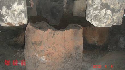兗州中材建設(shè)有限公司云維項(xiàng)目部 實(shí)施石墨電極分解爆破 近日,應(yīng)云維乙炔化工有限公司(業(yè)主)要求,我項(xiàng)目部對(duì)其廠區(qū)1#電石爐內(nèi)石墨電極成功實(shí)施分解爆破。 本次爆破點(diǎn)位于業(yè)主電石車(chē)間二層電石爐內(nèi),技術(shù)人員和安全員經(jīng)現(xiàn)場(chǎng)勘查發(fā)現(xiàn):石墨電極為直徑1.2m、高約1.5m的圓柱狀石墨體,從中心呈輻射狀均勻分布12塊約1cm厚鋼板。三個(gè)電極呈“品”字狀分布在一個(gè)直徑約7~8米的幾乎密閉的鋼制反應(yīng)爐內(nèi)(有洞口)。爆前充分勘察了爆區(qū)周?chē)膶?shí)際情況,結(jié)合從網(wǎng)絡(luò)上搜集的對(duì)石墨電極的性能分析和以往的爆破經(jīng)驗(yàn),選用合適的爆破器材,擬定了幾種爆破方案。充分分析爆破方案的可行性后,選擇其中可行性較高的兩種方案進(jìn)行了試爆,結(jié)合兩次試爆效果,經(jīng)調(diào)整爆破參數(shù)后,最終成功拆除。 本次爆破對(duì)僅隔約10米遠(yuǎn)、正在生產(chǎn)的2#爐和庫(kù)房未產(chǎn)生任何影響。 這次爆破工作雖小,但我們本著謹(jǐn)慎、科學(xué)的態(tài)度對(duì)待。從爆破參數(shù)的選擇到安全警戒都認(rèn)真小心,取得了預(yù)想的效果。 通過(guò)這次爆破,積累了對(duì)巖石以外材料的爆破經(jīng)驗(yàn),也增加了我項(xiàng)目部尤其是年輕人工作技能。也到了業(yè)主的認(rèn)可。(兗州中材云維項(xiàng)目部 )