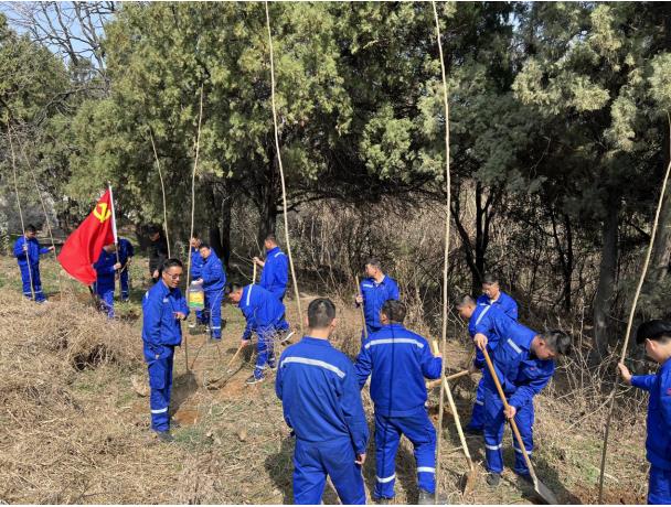 臨近3.12植樹節(jié),為響應(yīng)中材礦山“黨旗紅,礦山綠”的主題植樹活動,本次團建活動特意加入了植樹環(huán)節(jié)。大家有的鏟土挖坑、有的培土植樹,有的澆水灌溉,個個爭先恐后,干得熱火朝天。