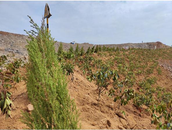 大家弓著身子,腳下踩著礦山新覆蓋的沃土,一層打底,一層加固施肥,植下綠色的希望。站在礦山之巔,望著礦山一片春色,環(huán)山而上綠色海洋生機(jī)盎然,春風(fēng)拂過,蕩起微微波瀾,這樣的美色是我們礦山種植者的功勛?;厥淄眨叶d禿的一片是我們記憶中對礦山的寫照,而現(xiàn)在綠油油的生機(jī)點(diǎn)燃的是建設(shè)綠色礦山的星星之火。