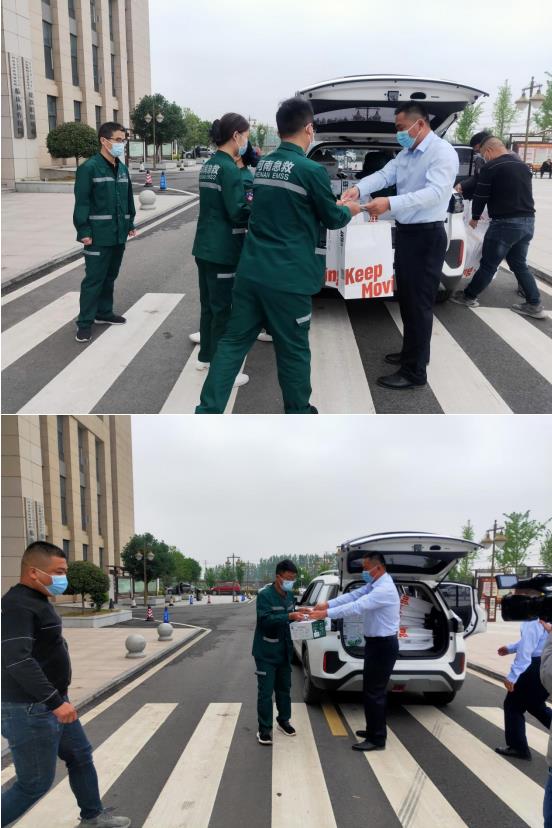 寶豐分公司經(jīng)理宋道明與中醫(yī)院急救科護(hù)士交談:“你們辛苦了,目前疫情形勢(shì)嚴(yán)峻,你們堅(jiān)守崗位、迎難而上,為疫情防控做出了突出貢獻(xiàn),我代表兗州中材寶豐分公司祝你們節(jié)日快樂。”