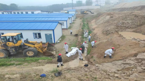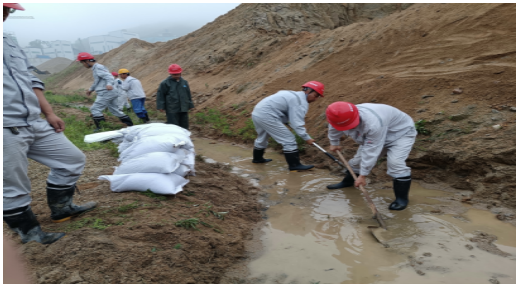 2022年6月20日早6點,接應急管理部門通知吉林地區(qū)預計未來24小時內(nèi)將有強降雨,舒蘭分公司項目經(jīng)理宋憲軍緊急通知各科室人員,組織對現(xiàn)場、生活區(qū)、炸藥庫、維修車間等地點進行了防汛設(shè)施檢查。生活區(qū)東側(cè)邊坡被臨近公司時候后未進行修整,加之連續(xù)降雨一整夜,東側(cè)邊坡垮塌,淹沒排水溝,造成堵塞。 接到通知后,生產(chǎn)科,立即調(diào)用裝載機趕到現(xiàn)場,組織員工帶好防汛裝備趕到現(xiàn)場?,F(xiàn)場負責人周浩講“裝載機立即清理邊坡上的塌陷料,生產(chǎn)科組織人員去上游疏通水道,安全科和設(shè)備科組織人員去邊坡上面挖掘水溝設(shè)置擋墻,避免水流二次破壞邊坡”,任務分配完畢后,各科室?guī)ьI(lǐng)人員緊鑼密鼓的組織起來。