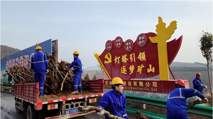 活動中,大家一起鏟土造坑、培土圍堰、扶正樹苗、填土踩實(shí)、澆水灌溉,現(xiàn)場一派繁忙景象,氣氛熱烈,在大家的團(tuán)結(jié)協(xié)作下,200余棵樹苗便在道路兩旁安了“家”,建立起象征著攜手共建綠色礦山的“同心樹林”,一棵棵新植樹苗迎風(fēng)而立,守護(hù)著礦山水土。