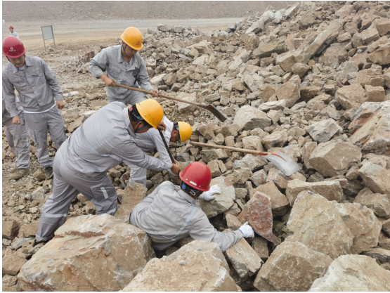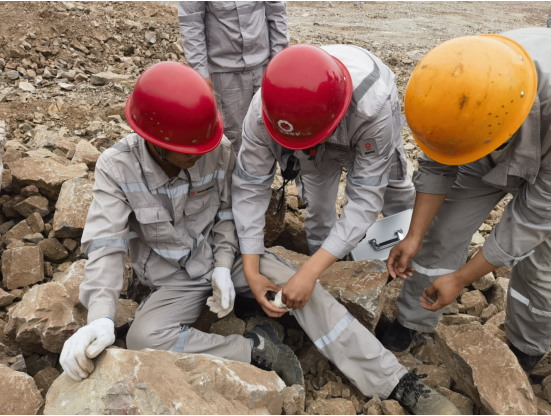 上午10時整,演練正式拉開序幕。假設(shè)情況是該露天礦山某區(qū)域發(fā)生了邊坡坍塌,造成一名作業(yè)人員腿部受傷被困。接到報告后,項目副經(jīng)理楊宇立即啟動應(yīng)急預(yù)案,迅速組織了由醫(yī)療救護組、應(yīng)急搶險組、警戒保衛(wèi)組、物資保障組等部門人員組成的應(yīng)急救援隊伍,攜帶救援裝備,迅速趕赴事故現(xiàn)場。同時,通訊保障組也迅速建立起臨時通訊網(wǎng)絡(luò),確?,F(xiàn)場信息暢通無阻。