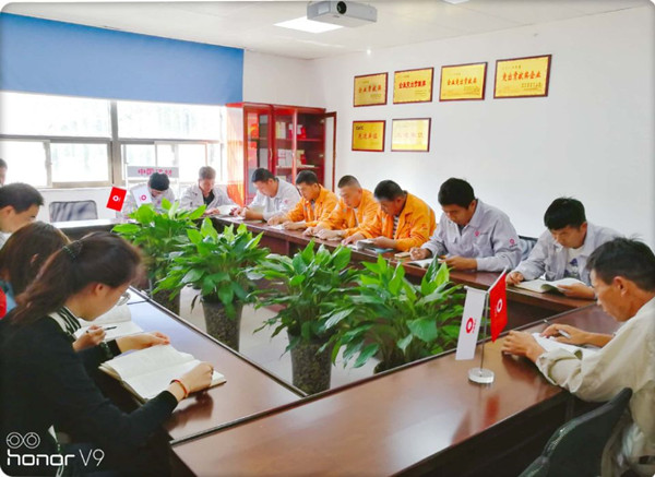 會(huì)上,項(xiàng)目經(jīng)理劉進(jìn)德帶領(lǐng)大家認(rèn)真學(xué)習(xí)了劉書(shū)記在中材礦山建設(shè)有限公司開(kāi)展的“不忘初心、牢記使命”主題教育部署會(huì)上的重要講話并學(xué)習(xí)了《習(xí)近平關(guān)于“不忘初心、牢記使命”論述摘編》《習(xí)近平新時(shí)代中國(guó)特色社會(huì)主義思想學(xué)習(xí)綱要》兩本書(shū)籍。