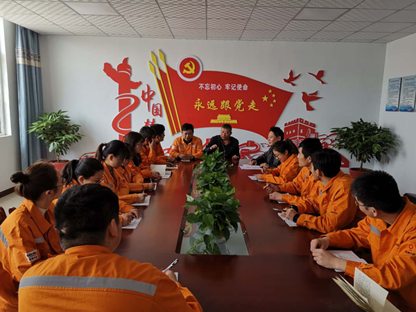 隨后,王書(shū)記組織分公司全體員工召開(kāi)了黨建推進(jìn)工作會(huì)議,他主要從三個(gè)方面指出: 一、要扎實(shí)推進(jìn)”兩學(xué)一做“學(xué)習(xí)教育常態(tài)化制度化,認(rèn)真抓好黨建工作。 要不斷加強(qiáng)政治理論學(xué)習(xí),黨員干部不僅要認(rèn)真學(xué)習(xí)十九大精神和新《黨章》等知識(shí),做好學(xué)習(xí)筆記、撰寫(xiě)心得體會(huì),認(rèn)真學(xué)習(xí)貫徹習(xí)近平新時(shí)代中國(guó)特色社會(huì)主義思想,樹(shù)牢”四個(gè)意識(shí)”、堅(jiān)定”四個(gè)自信”,真抓實(shí)干,擔(dān)當(dāng)作為。還要不斷提高業(yè)務(wù)水平,把所學(xué)知識(shí)應(yīng)用于工作實(shí)踐,知行合一,創(chuàng)新工作方法,提高把握和駕馭全局的能力。 二、要盡職盡責(zé),全面完成各項(xiàng)工作任務(wù) 要建立基層黨建工作責(zé)任制,堅(jiān)持黨建工作與業(yè)務(wù)工作一起抓;健全完善基層黨支部工作制度。堅(jiān)持“三會(huì)一課”、主題黨日活動(dòng)、黨風(fēng)廉政建設(shè)、黨員評(píng)議、黨組織活動(dòng)等工作健康有序開(kāi)展。 (1)工作要積極配合,主動(dòng)協(xié)調(diào),黨員干部教育、培訓(xùn)方法要不斷創(chuàng)新。 (2)夯實(shí)基礎(chǔ),不斷提高黨建工作整體水平。抓好基層黨組織班子建設(shè),堅(jiān)持每年開(kāi)展“爭(zhēng)先創(chuàng)優(yōu)”活動(dòng)。并要求大家在平時(shí)的工作、生活、學(xué)習(xí)中要時(shí)刻以黨員標(biāo)準(zhǔn)來(lái)要求自己的言行舉止,抓基層黨組織隊(duì)伍建設(shè),提高黨員政治素質(zhì)。 (3)豐富載體,不斷增強(qiáng)黨建工作的凝聚力 三、要不斷增強(qiáng)廉潔從政的自覺(jué)性和堅(jiān)定性。堅(jiān)持以共產(chǎn)黨員的標(biāo)準(zhǔn)嚴(yán)以律己,增強(qiáng)自律意識(shí),堅(jiān)持廉潔從政。 會(huì)上,李增光部長(zhǎng)也進(jìn)行了發(fā)言,他說(shuō)今年是集團(tuán)黨建工作推進(jìn)年,要求分公司要認(rèn)真落實(shí)好公司2019年度工作會(huì)議要求和黨委工作總體安排,要求黨員干部合理利用好“燈塔黨建在線”和”學(xué)習(xí)強(qiáng)國(guó)”學(xué)習(xí)平臺(tái),加強(qiáng)黨員干部理論學(xué)習(xí),規(guī)范主題黨日活動(dòng);進(jìn)一步統(tǒng)一思想,擔(dān)當(dāng)作為,很抓落實(shí),努力創(chuàng)建好分公司黨建書(shū)屋。期待大家在日常工作、生活的方方面面都隨時(shí)保持朝氣蓬勃、努力向上的良好精神狀態(tài)。 會(huì)后分公司經(jīng)理顏景祥說(shuō),面對(duì)現(xiàn)場(chǎng)復(fù)雜的生產(chǎn)形勢(shì)和不利生產(chǎn)因素,他相信分公司全體員工一定能夠做好黨建和安全、生產(chǎn)工作!知行合一,希望大家能以高標(biāo)準(zhǔn)、高要求、不走形勢(shì)、認(rèn)真執(zhí)行落實(shí)好,不忘初心,努力工作,為推動(dòng)公司高質(zhì)量發(fā)展不斷邁上新臺(tái)階。