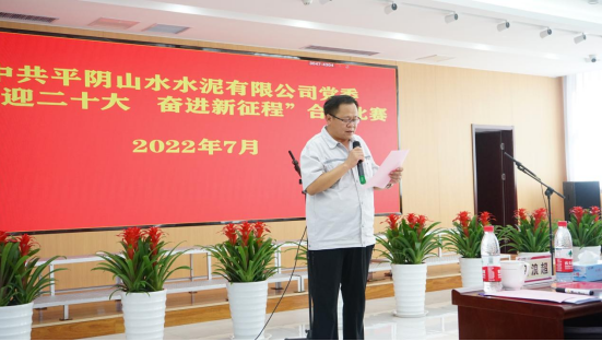 今年是偉大的中國共產(chǎn)黨建黨101周年華誕,為慶祝黨的百年華誕中共平陰山水水泥有限公司黨委組織開展“喜迎二十大 奮斗新征程”合唱比賽。 7月8日下午15:30分,隨著歡快的《迎賓進行曲》的響起,參加合唱比賽的12位評委和5支代表隊依次進場。 本次比賽共分為:行政銷售支部代表隊、塑編支部代表隊、生產(chǎn)一支部代表隊、生產(chǎn)二支部代表隊和兗州中材平陰分公司與礦管辦代表隊。 15:50分活動正式開始,平陰山水黨委書記侯福存發(fā)表主旨講話:今年是建黨101周年。100多年來,我黨團結(jié)帶領(lǐng)全國各族人民自強不息、拼搏進取,戰(zhàn)勝艱難險阻,取得了舉世矚目的輝煌成就,帶領(lǐng)我們昂首闊步邁向偉大復興。今天,我們隆重集會,用歌聲頌揚黨的光輝歷史,緬懷黨的豐功偉績,向黨的101歲華誕獻禮,向黨的二十大獻禮。公司黨委舉辦本次合唱大賽,既是豐富黨建工作形式、促進黨建和公司中心工作高度融合的重要舉措,也希望通過比賽,進一步增強黨群、干群凝聚力和向心力,激勵全體干部職工堅定信念、迎難而上,在“百日趕超”勞動競賽中繼續(xù)立足崗位、攻堅克難,全力沖刺“大趕超”任務目標,為公司項目建設(shè)和高質(zhì)量發(fā)展貢獻更大力量。 最后,侯書記宣布合唱比賽開始。