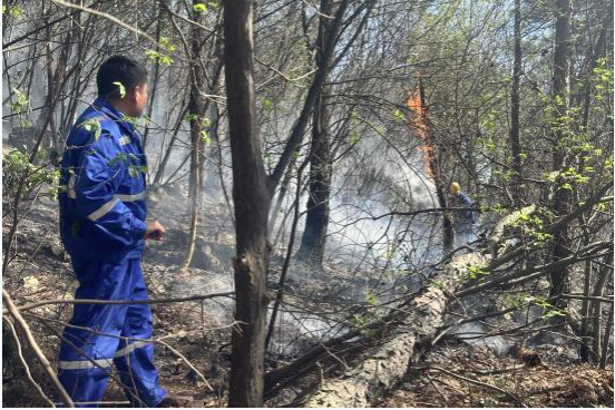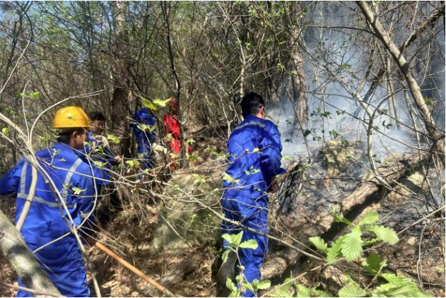 清明將至,當(dāng)?shù)卮迕穹傧銦埣漓?,造成飛火引起了火災(zāi)。因起火點位于山地深處,遠(yuǎn)離公路,滅火任務(wù)困難,距離水源較遠(yuǎn),在項目副經(jīng)理向孝陽同志和安全副經(jīng)理張目利同志的帶領(lǐng)下,大家紛紛拿起鐵鍬、釘耙等工具,前往起火點,清理易燃物,鏟土澆蓋火星子,為下一步工作做好鋪墊,終于在大家的努力下,水源送到了山頂,火情被一一撲滅。