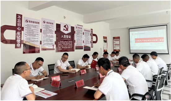 首先,西南片區(qū)黨支部召開支部黨員大會,集中學(xué)習(xí)《中國共產(chǎn)黨紀(jì)律處分條例(2024年)》新修訂版,就修訂的主要內(nèi)容和鮮明特征、對推動全面從嚴(yán)治黨的意義、抓好貫徹落實(shí)等方面做出詳細(xì)解讀,并強(qiáng)調(diào)在項目經(jīng)營中,對規(guī)章制度和廉潔紀(jì)律要嚴(yán)格遵守,著重提出對“高壓線”、“紅線”問題不可觸犯。
